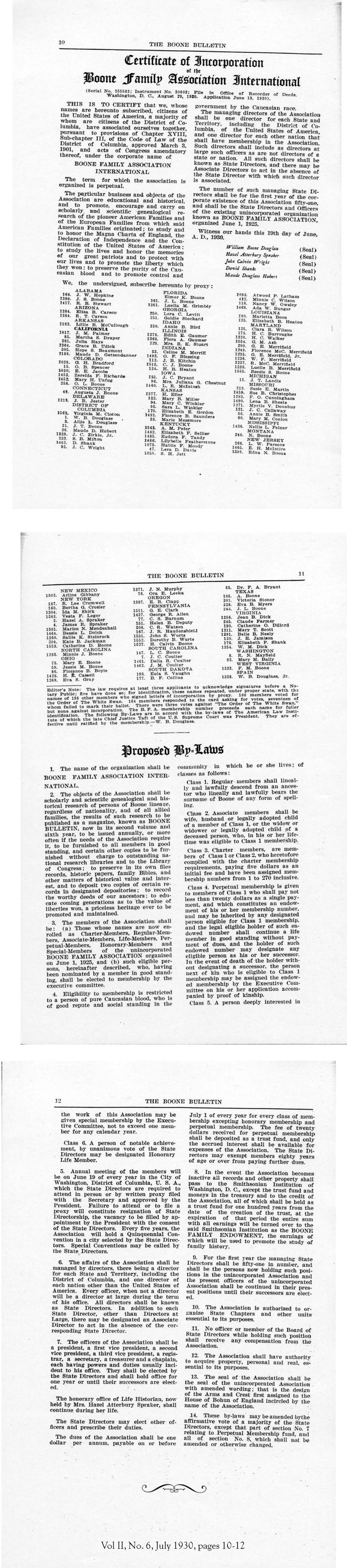 1. The incorporation was dated August 29, 1930, with the application made on June 19, 1930. Ref.: Serial No. 255583, Instrument No. 20603, on file in the Office of Recorder of Deeds, Washington, D.C. Please click here to view the relevant pages from The Boone Bulletin (in jpg format).