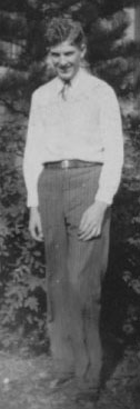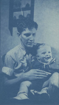 After Dad graduated in 1930, he found a job at the Champion Paper Company in Hamilton, Ohio. It was there that he met my Mother, Thelma Wolf, who was a friend of Jeaneace Beckett, who married my Uncle Don. They were married, and I was born in Hamilton in 1936. Dad had a folding Kodak camera, which he liked to use for indoor photography, using bright lamps. The blue tint of the third picture came from using a blue print machine to make the copies.