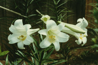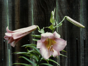 Dad was an avid gardener. When we first moved to Oklahoma and bought a house, Dad got one with a double lot. His garden took up half of one lot! He liked to try growing things that weren't usually grown in that climate, sometimes with success, sometimes not. He took extension courses in horticulture, and became very knowledgable. He liked to grow both vegetables and flowers, but it was the flower garden that got his special attention. He especially liked pinks and delphiniums, but he grew a variety of flowers. He continued active gardening until just a few months before his death. Here are a couple of photos he took of his flowers.