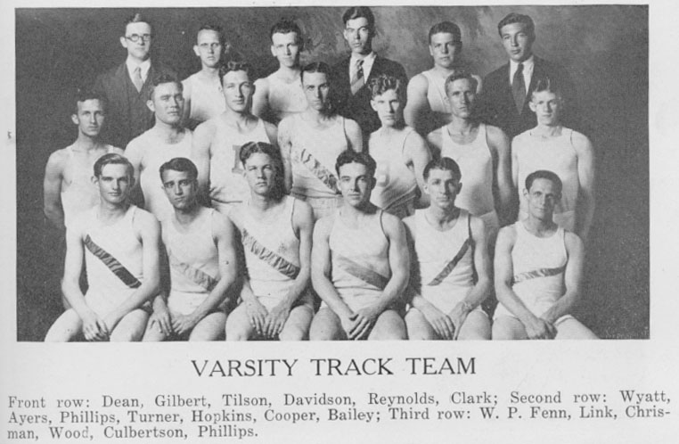 Dad went to high school and college at Berea Academy and Berea College. He majored in chemistry, which he said is the only thing he ever considered making a career in. Here is a photo of him with the college track team, of which he was a member.
