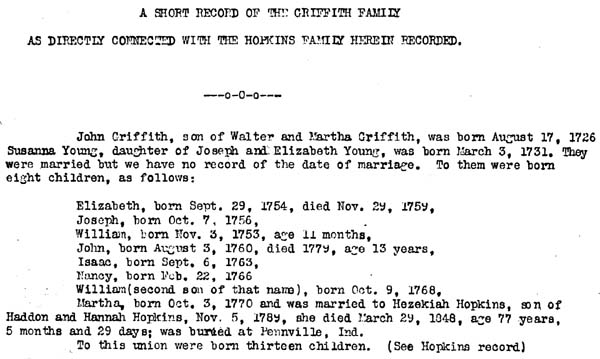 Go To Griffith Family History Excerpt