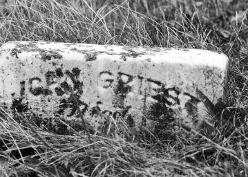These are inscriptions I copied and photographed during a trip to Indiana in 1994. The first set were from the old burying ground used by the Quakers in Camden (later changed to Pennville). It lies just east of town, overlooking the Salamonie River. Most of the grave markers are of the traditional Quaker style, very small and simply inscribed. Plain in life, they wanted to be plain in death as well. For an example, here is the stone for John Griest.