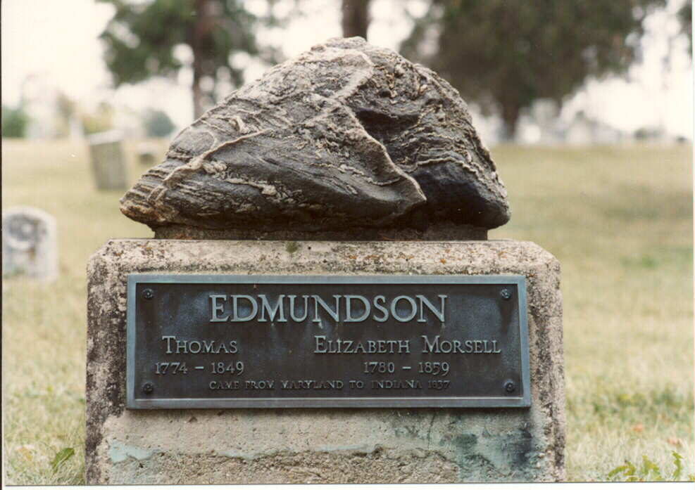EDMUNDSON THOMAS 1774-1849 ELIZABETH MORSELL 1780-1859 Came from Maryland to Indiana 1837 view monument |