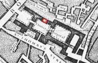 "The small parish of ST. THOMAS APOSTLE was formed out of the precinct and possessions of the hospital of St. Thomas of Canterbury which once were in St. Olave's parish. ... A tablet in the church ascribed its foundation to Edward VI in 1552, and absence of references to the parish in all but one of the earlier records supports this statement."